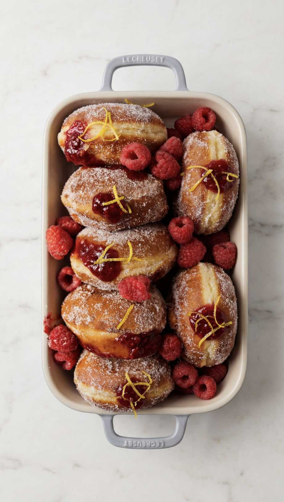 These Raspberry Jelly Filled Doughnuts are soft, pillowy, and bursting with bright raspberry flavor in every bite. The golden fried dough is light and airy, coated in sugar, and filled with a sweet-tart raspberry jelly that adds the perfect pop of freshness. They feel nostalgic and bakery-worthy, yet completely achievable at home. A true treat for brunch tables, special mornings, or anytime you’re craving something indulgent and classic.