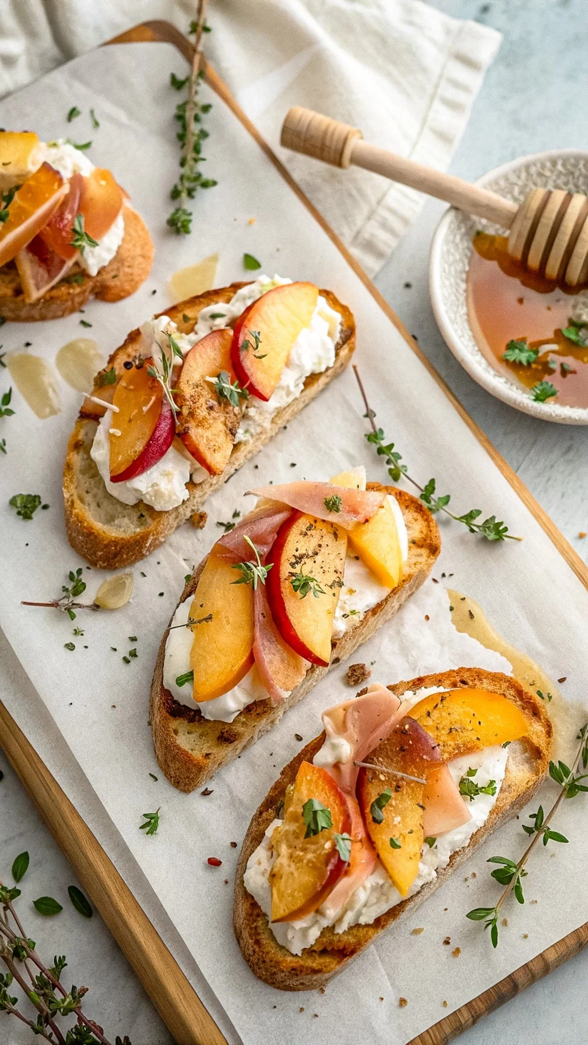 These Peach Burrata Honey Crostinis are the perfect balance of sweet, creamy, and savory. Juicy peaches pair beautifully with rich burrata, all layered over crisp toasted bread and finished with a drizzle of honey. They’re fresh, elegant, and effortlessly impressive — the kind of appetizer that feels restaurant-worthy but comes together in minutes. Perfect for brunch spreads, summer gatherings, or whenever you want something simple yet stunning.