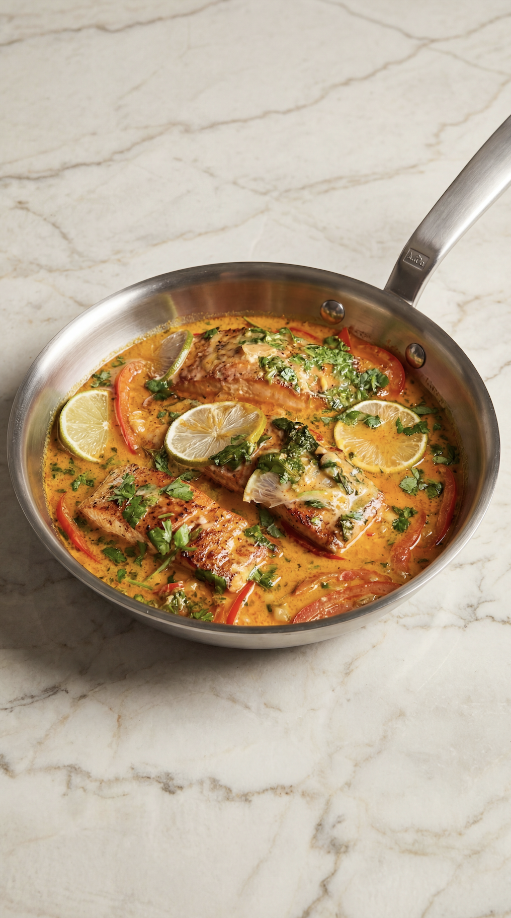 Red Thai Curry Salmon is warm, rich, and full of bold, comforting flavor. Flaky salmon simmers in a creamy coconut red curry sauce infused with fragrant spices, creating a dish that feels both cozy and vibrant. Served over rice, it’s deeply satisfying and packed with flavor — the kind of dinner that wraps you up in warmth while still feeling fresh and exciting.