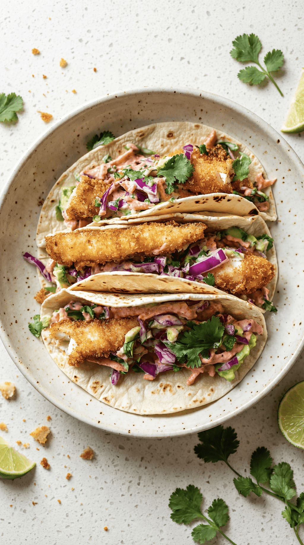 10. Crispy Fish Tacos with Creamy Slaw & Lime Crema