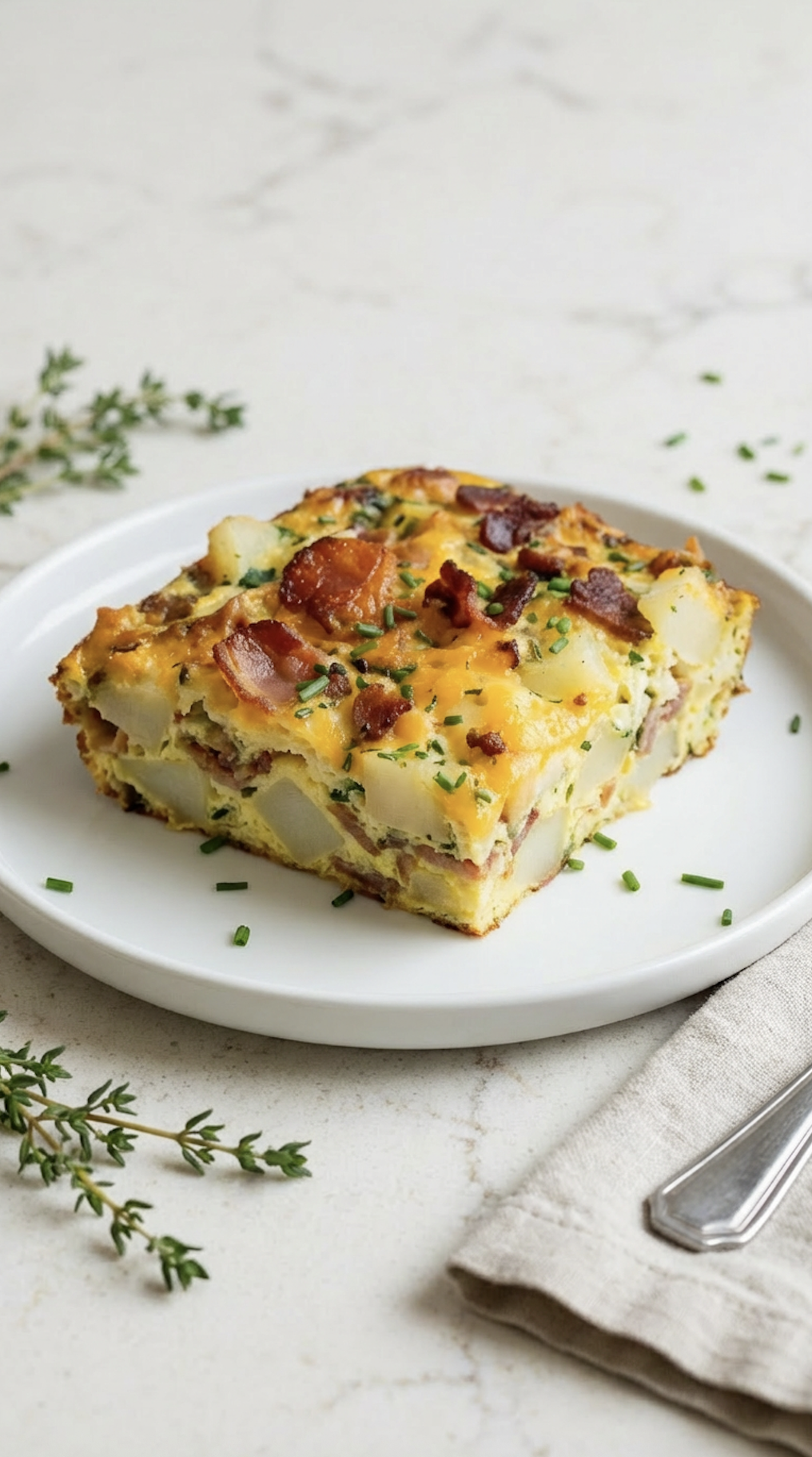 It’s filled with tender potatoes, fluffy eggs, crispy bacon, and plenty of melted cheese - all baked together into one cozy dish that somehow feels both hearty and relaxed at the same time. It’s the kind of breakfast you make when you want everyone to linger at the table a little longer.