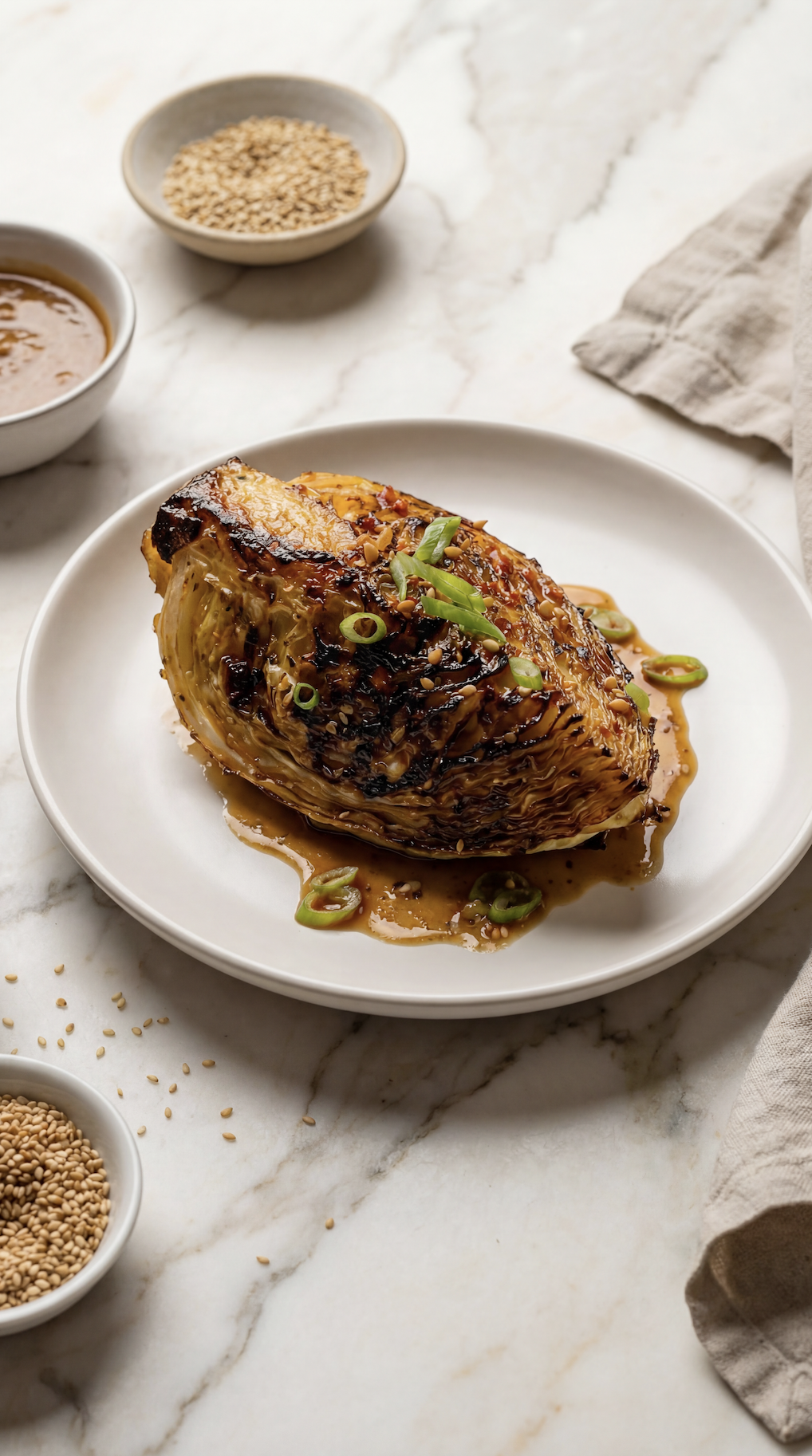 If your photo is the hero of this post, this recipe was made for it. Those dark, charred edges. The sheen of the sauce pooling on the plate. The contrast of golden cabbage against bright green scallions. This is cabbage at its absolute best, elevated, unfussy, and packed with umami.