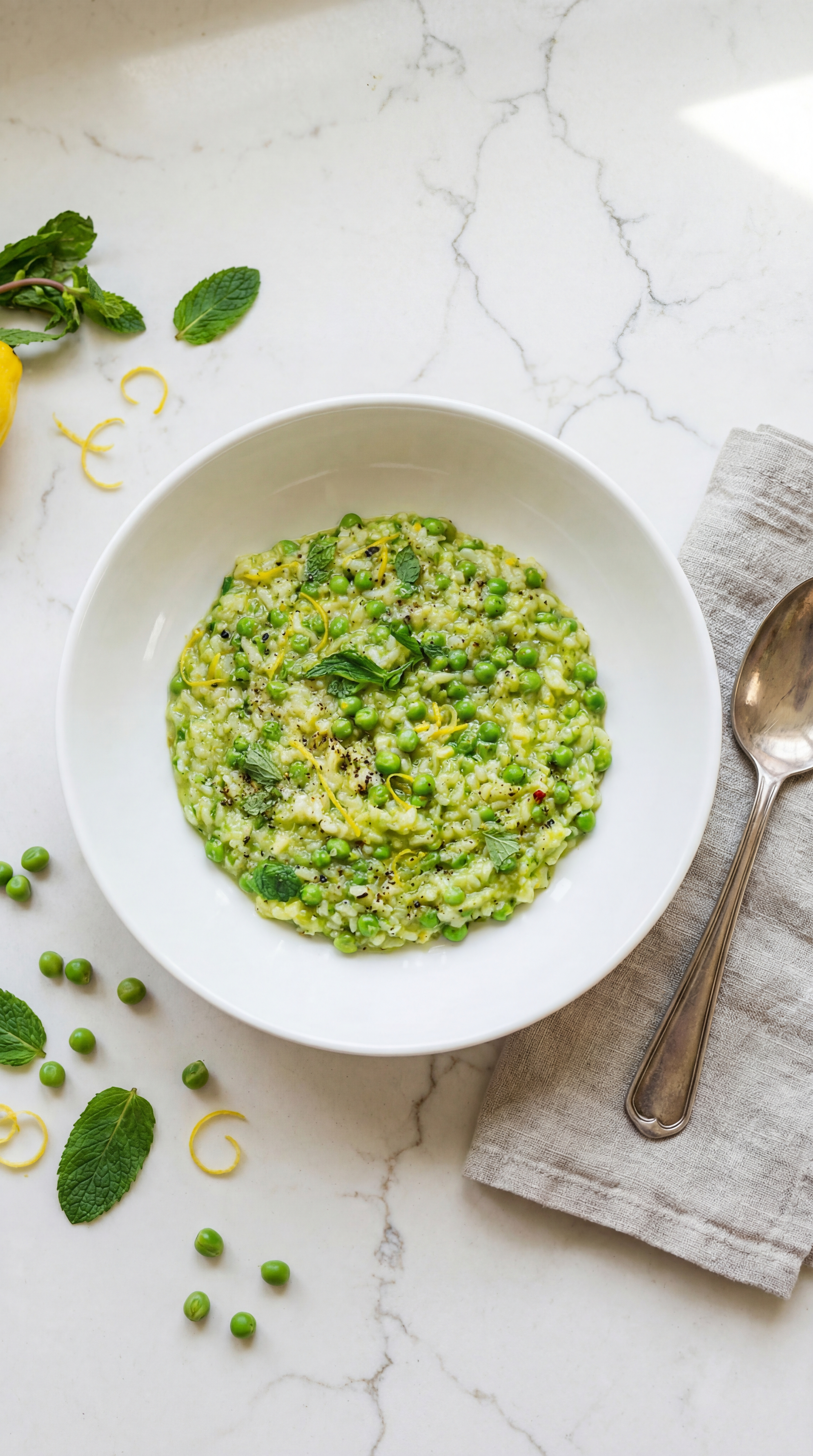 Creamy Green Pea Risotto with Mint & Lemon Zest