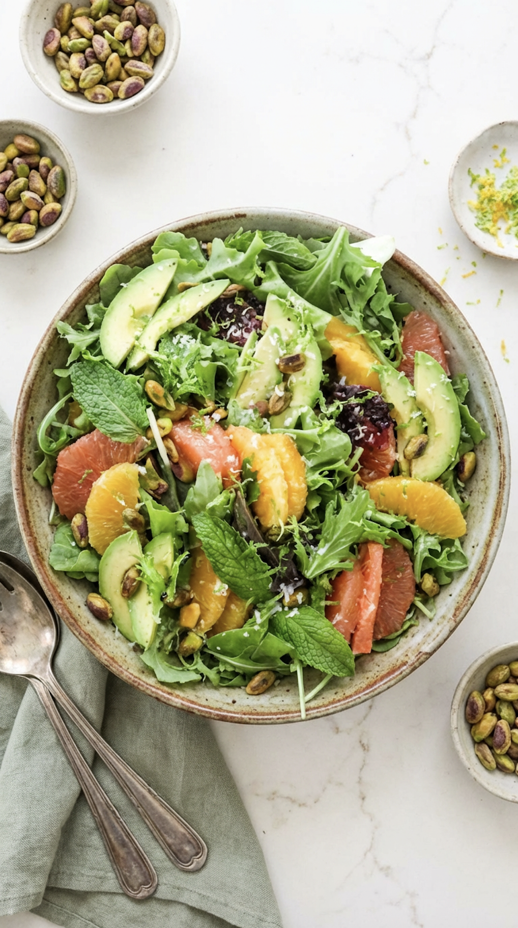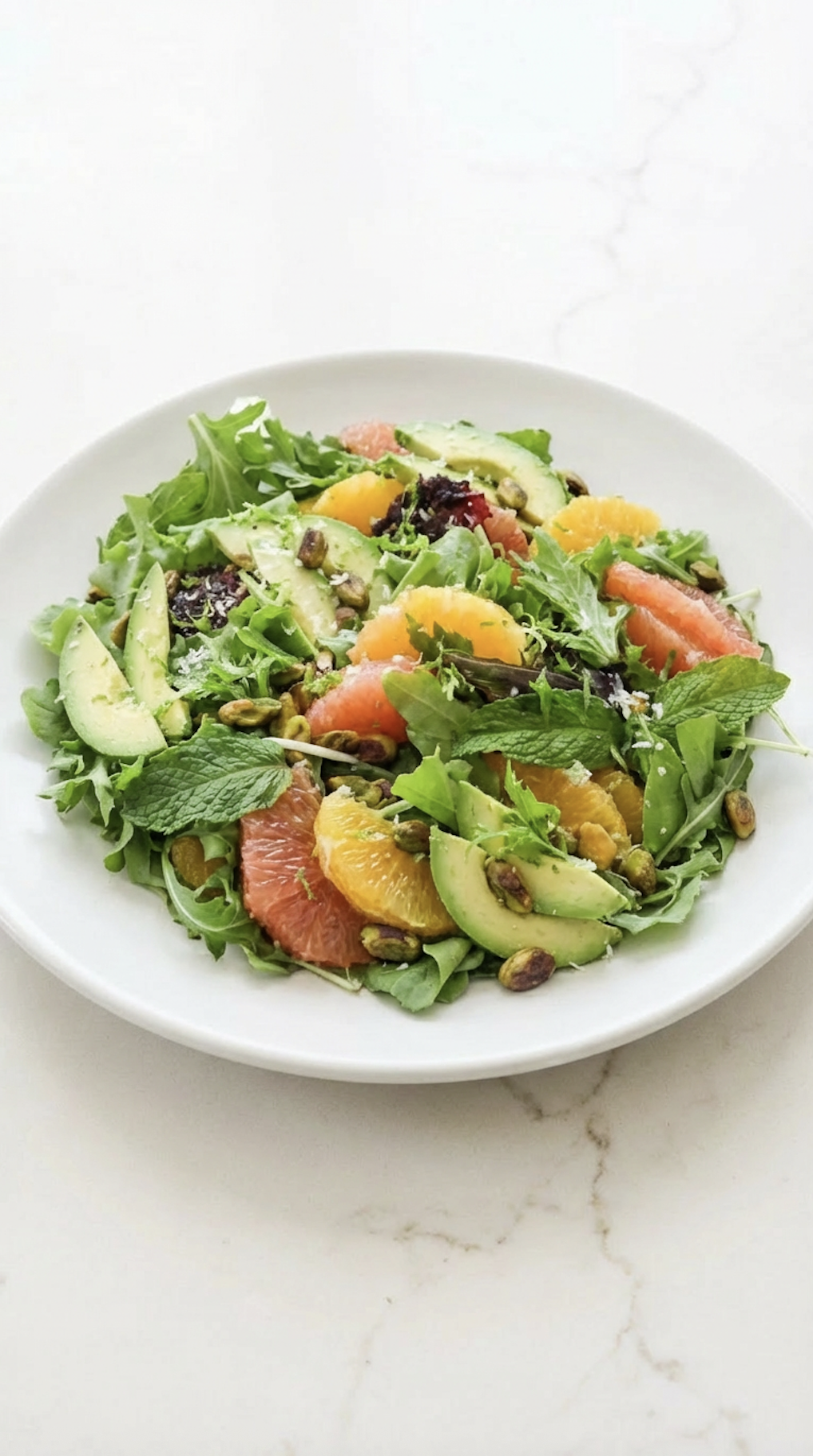 It’s one of those recipes that looks fancy enough to serve to guests, but is honestly so easy that you could throw it together half-awake on a Sunday afternoon. Bright oranges, juicy grapefruit, creamy avocado, crunchy pistachios, fresh herbs - every bite hits a little differently in the best way.