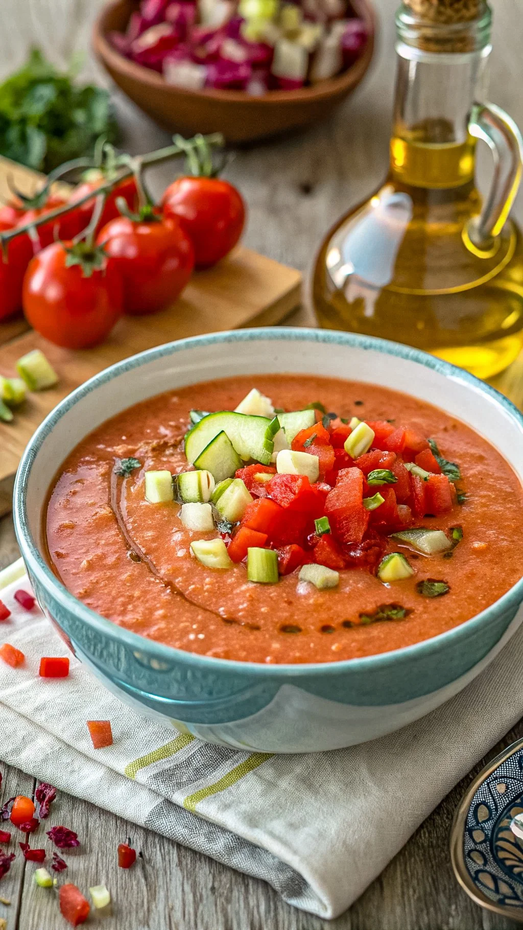 Whether you're enjoying it poolside, packing it for lunch, or pairing it with crusty bread and wine, this gazpacho is a seasonal essential.