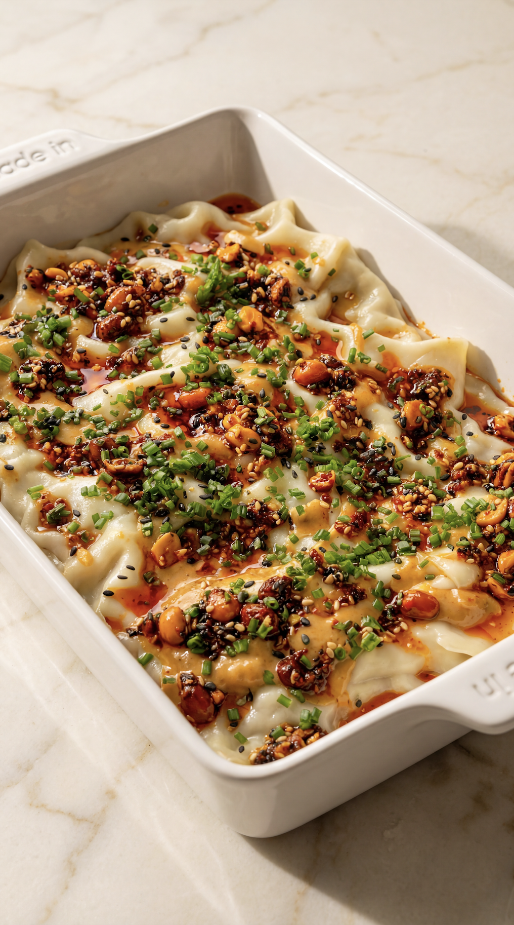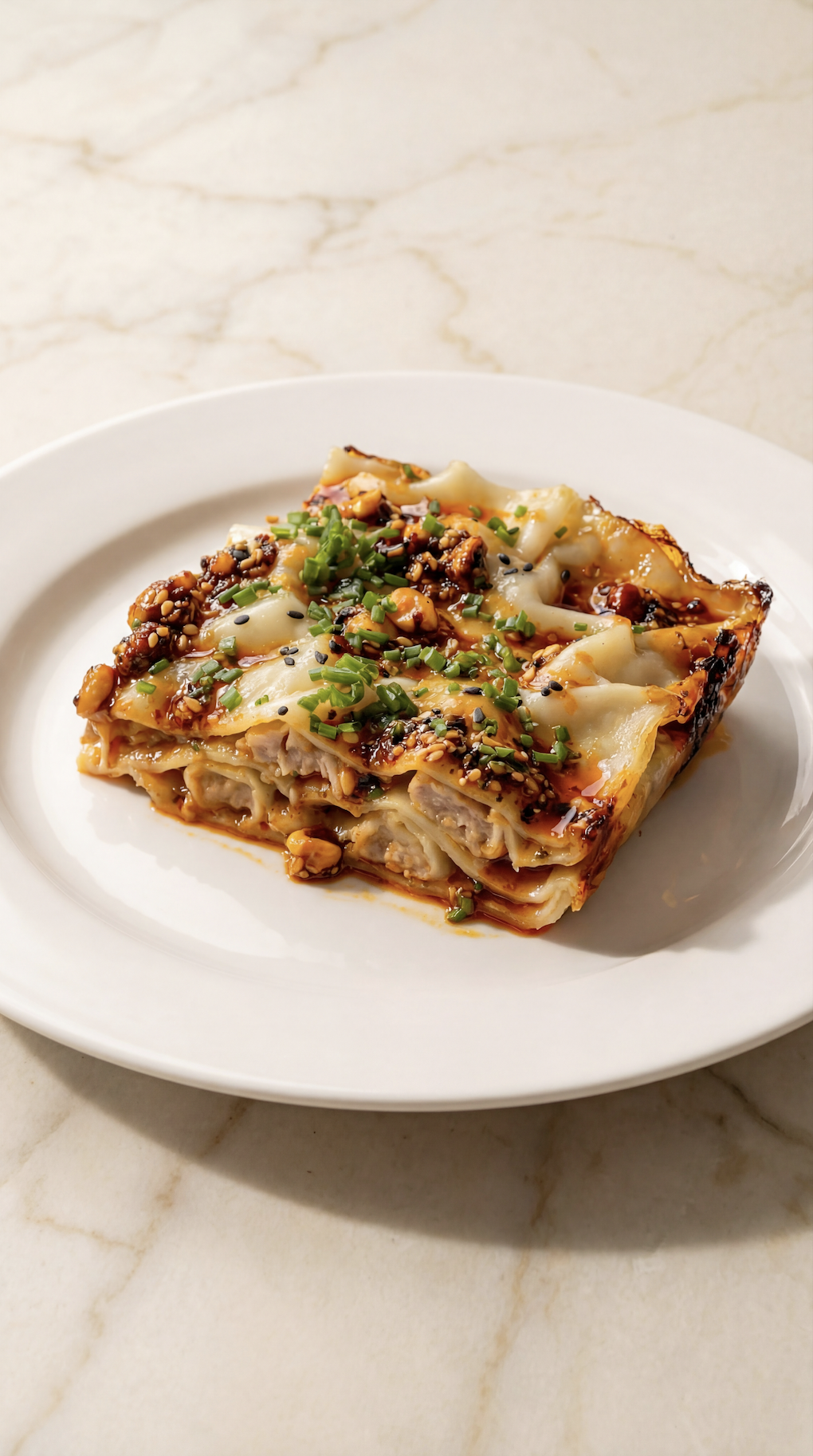 Okay, friend - this is one of those recipes that happens when comfort food cravings collide with a fully stocked fridge and a why not? attitude. It’s cozy like lasagna, indulgent like dumplings, and bold like your favorite chili-oil–drizzled takeout order. And somehow… it just works.