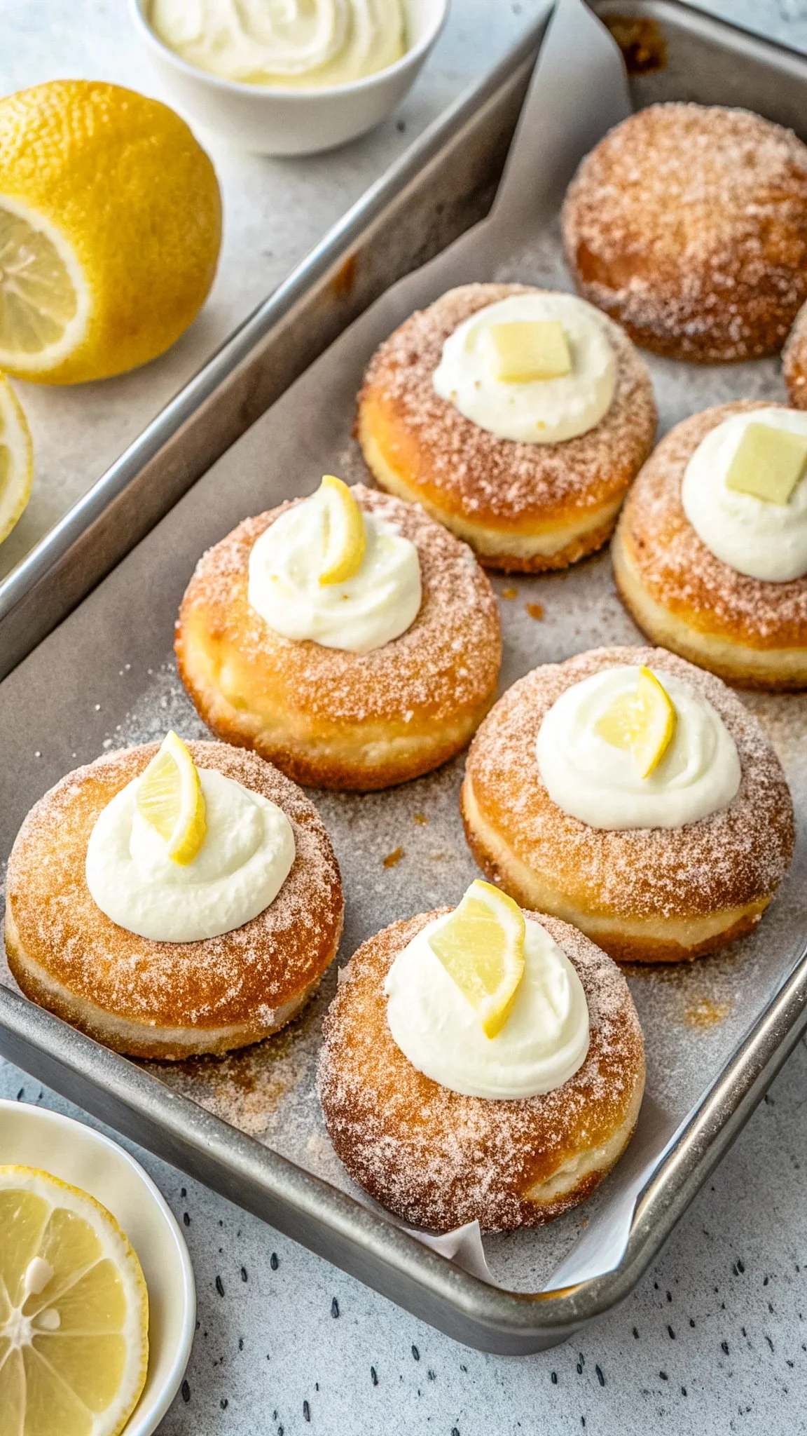 These lemon cream doughnuts are a celebration of citrus. From the first sugary bite into the airy dough to the cool, tart cream inside, they offer contrast and comfort all at once. Whether you serve them at brunch, gift them to friends, or save the whole batch for yourself (no judgment), they’re guaranteed to bring a little sunshine into your day.