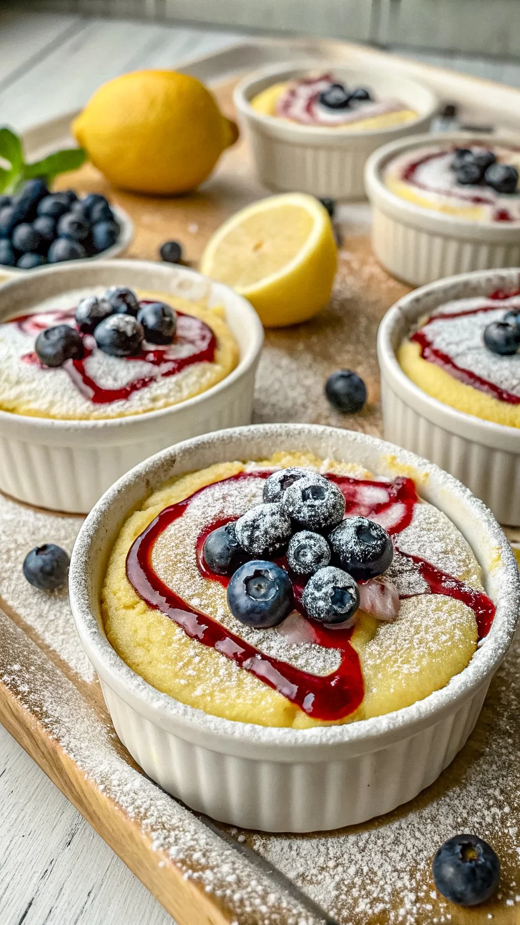 These Lemon Pudding Cakes with Blueberry Drizzle are soft, delicate, and absolutely bursting with flavor. The contrast between the tangy citrus base and the juicy, slightly sweet blueberry topping makes every bite unforgettable.