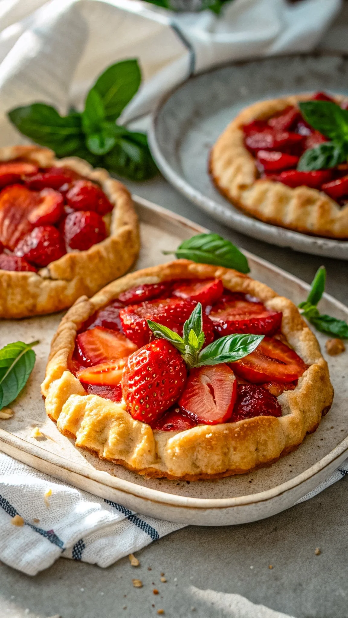These Mini Strawberry Galettes with Basil are proof that baking can be both casual and beautiful. They’re rustic yet refined, and each bite brings together sweet fruit, buttery crust, and a whisper of herbal brightness.