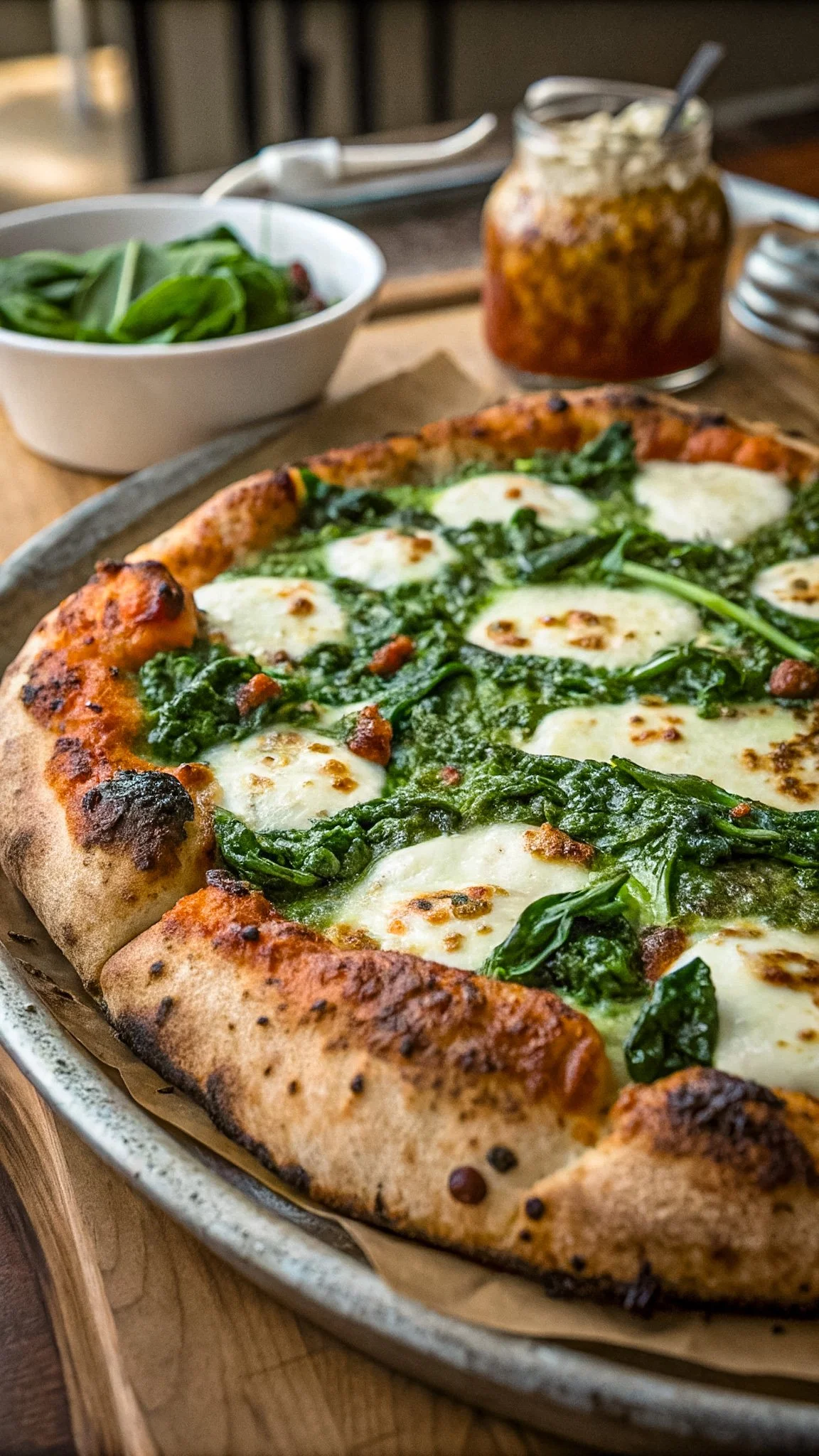 This Pesto Pizza with Spinach and Mozzarella is proof that pizza night doesn’t have to mean red sauce and pepperoni. With a vibrant pesto base, tender greens, and gooey mozzarella, it’s fresh, flavorful, and comes together with minimal effort. Whether you’re cooking for yourself or a crowd, this pizza is a surefire way to satisfy — and impress.