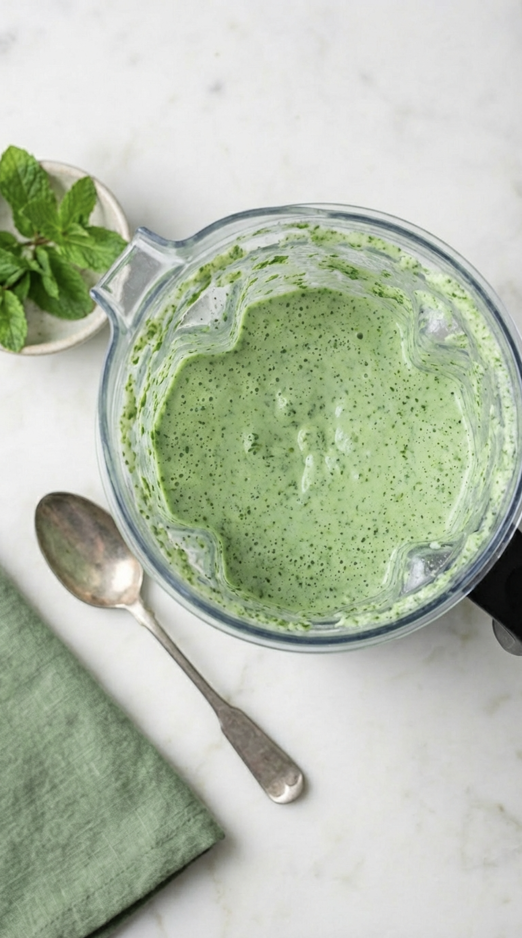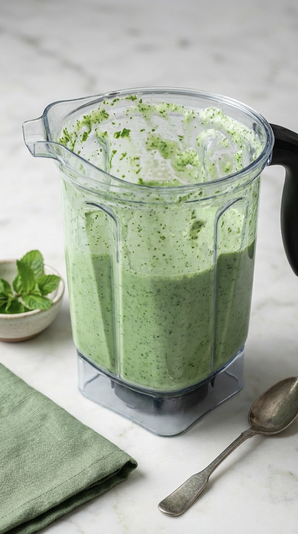 Blend on high for 30–45 seconds, or until completely smooth and creamy. You don’t want any green flecks - just a beautiful, soft minty green.