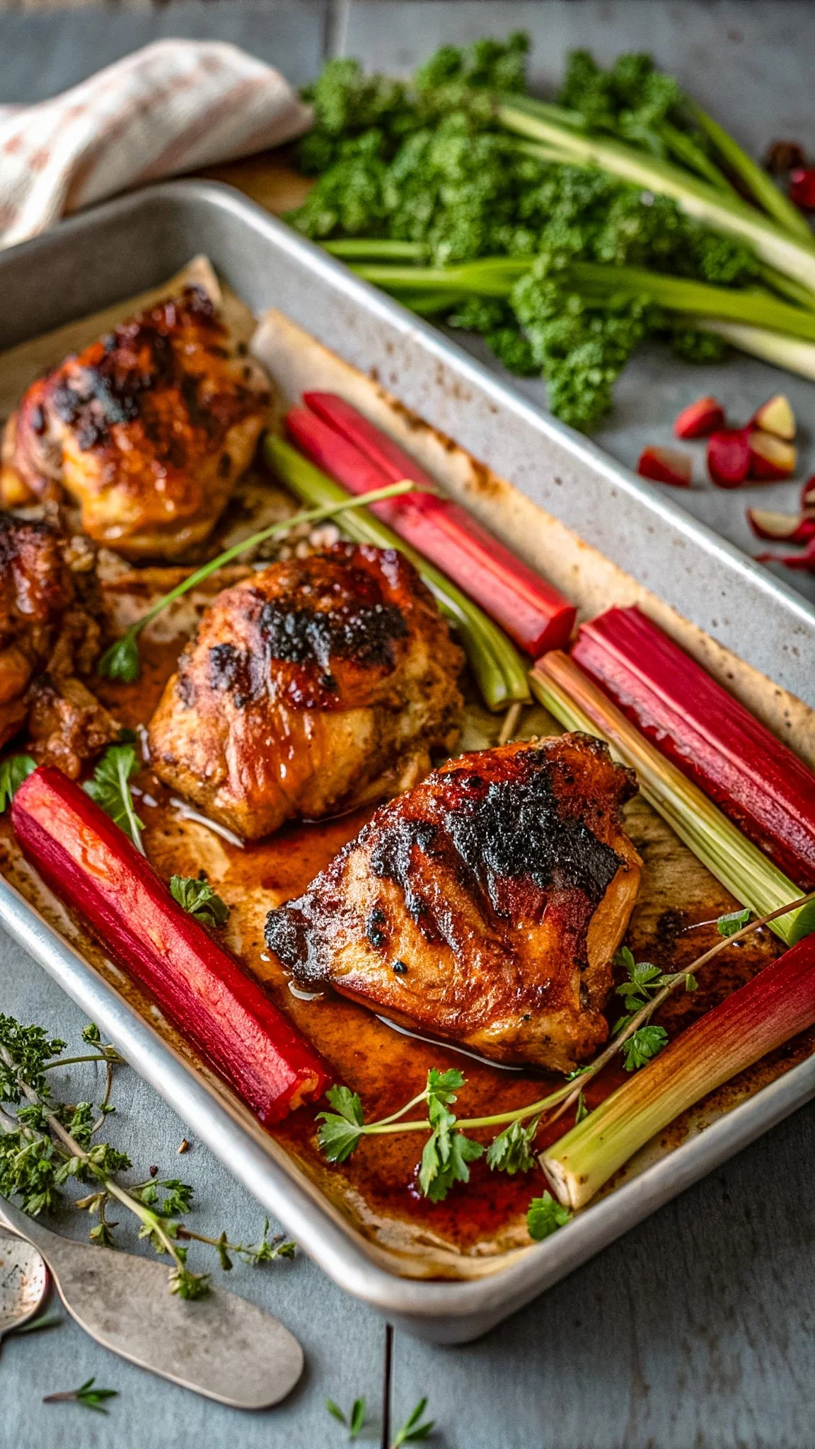 Sheet Pan Roasted Rhubarb Chicken Thighs
