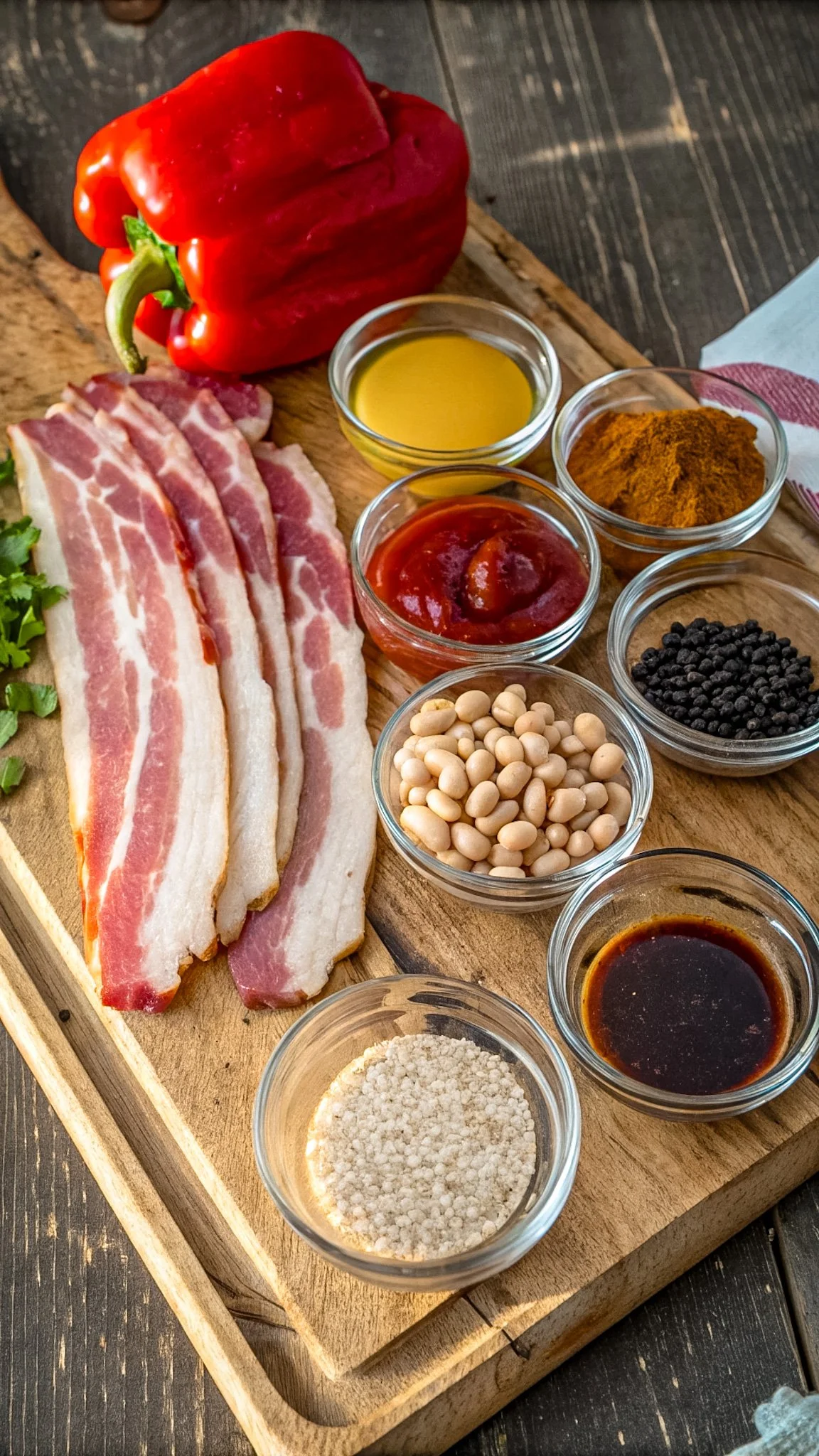 Sweet, savory, and smoky — these baked beans are slow-cooked to perfection with crispy bacon and tender red bell pepper in every bite.