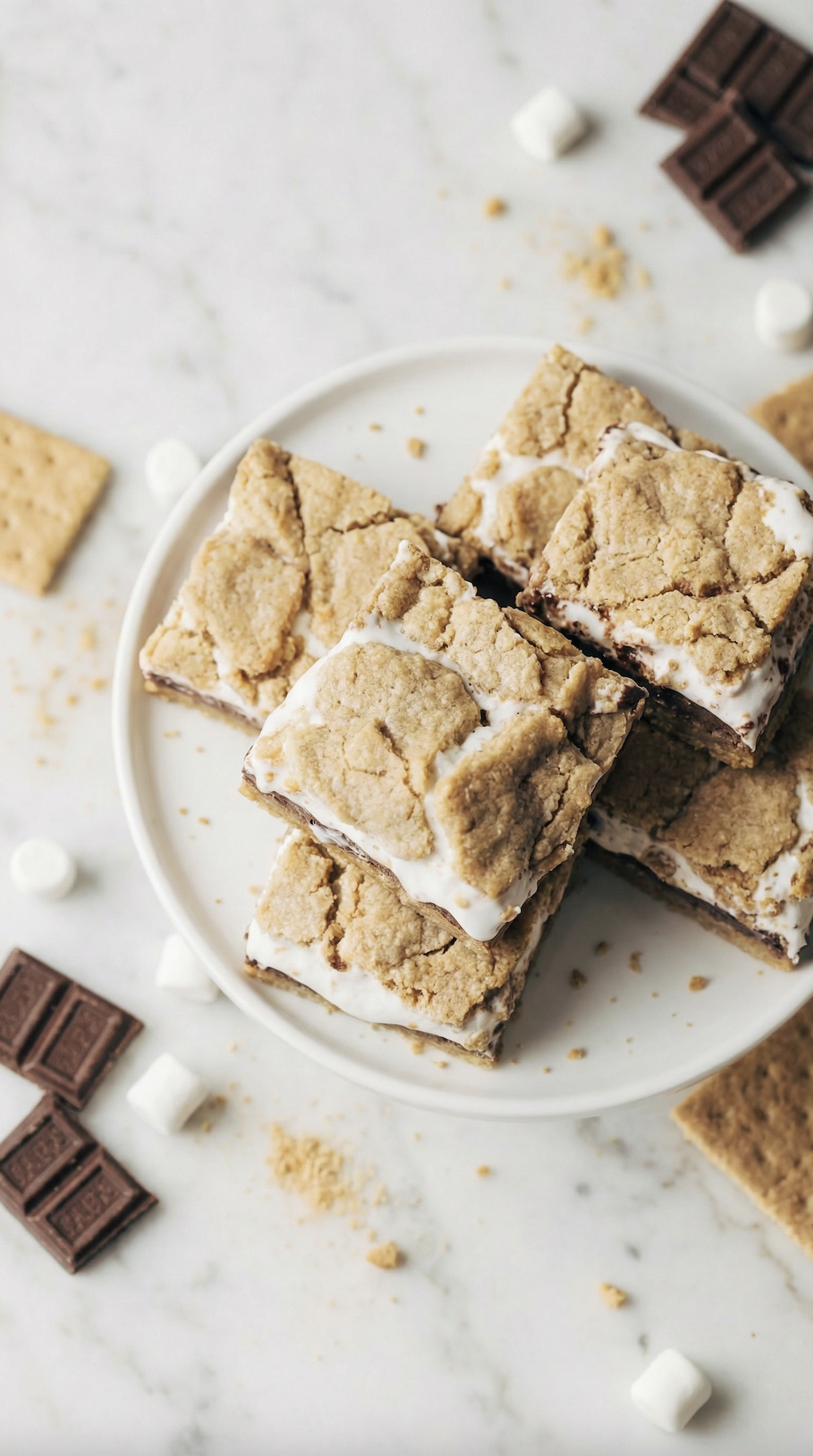 They capture everything we love about classic s’mores, but in a simple, easy-to-bake dessert bar. Instead of roasting marshmallows over a fire, everything bakes together in the oven to create layers of buttery graham crust, melted chocolate, and fluffy marshmallow topped with a golden crumble.