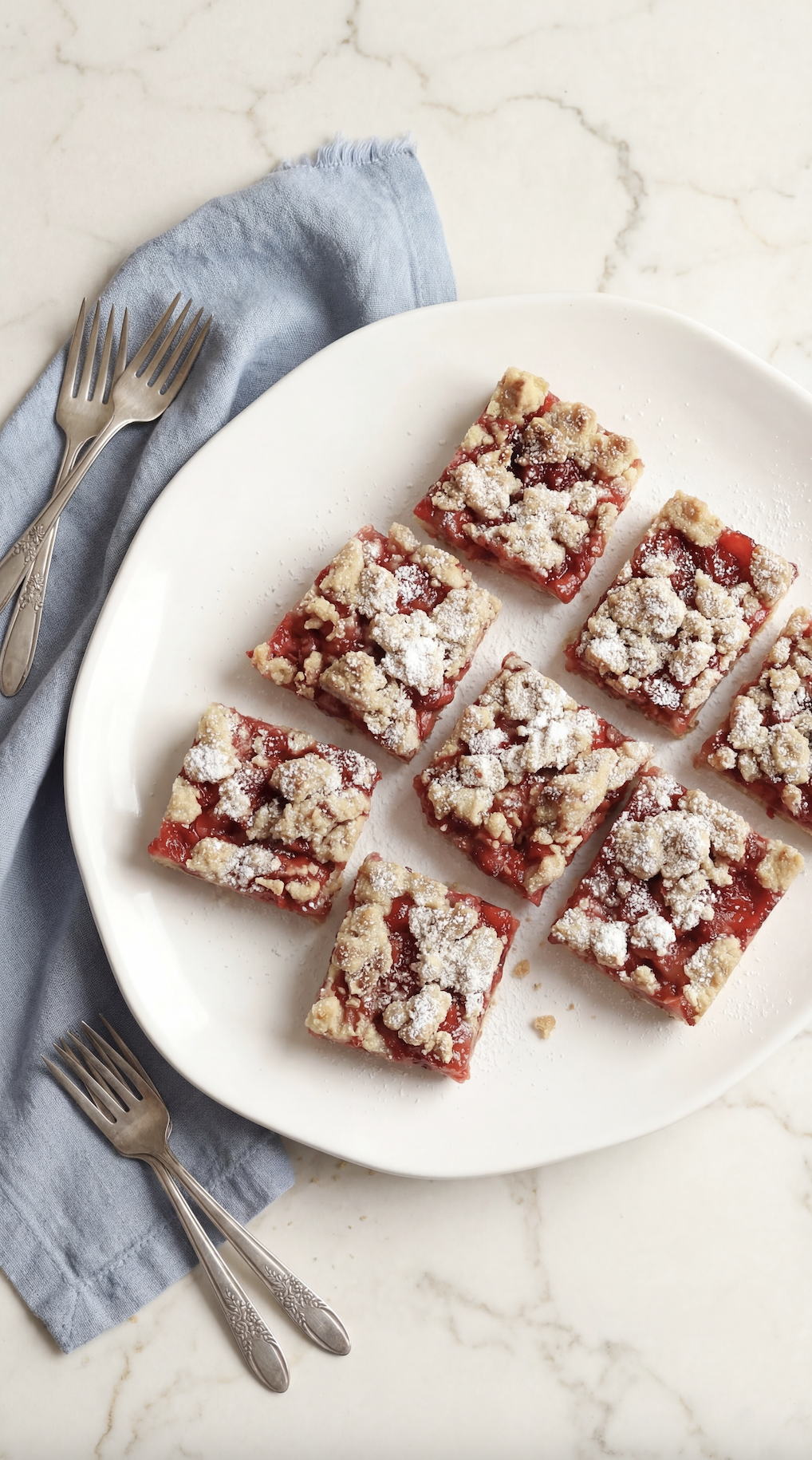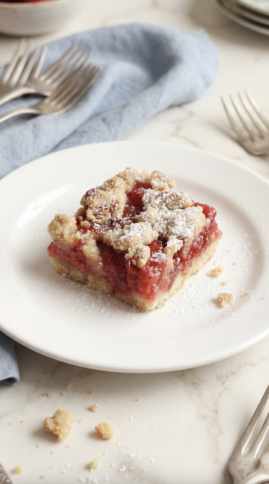 The bottom layer is tender and buttery, the strawberry filling is sweet and slightly jammy, and the crumble topping adds just the right amount of texture.