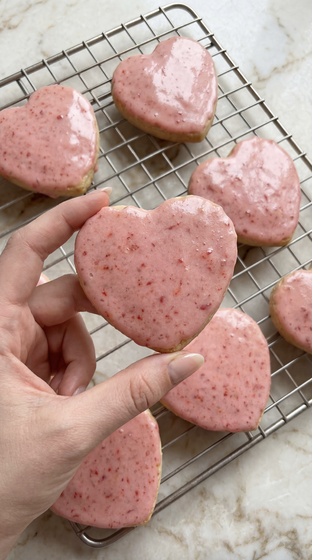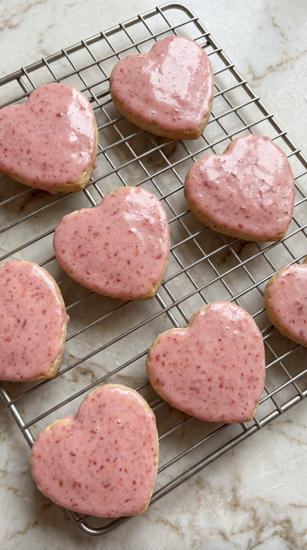 And the strawberry icing glaze? That’s what really makes them special. It’s naturally pink, lightly fruity, and sets just enough to give the cookies that glossy, bakery-style finish - without being hard or crunchy.